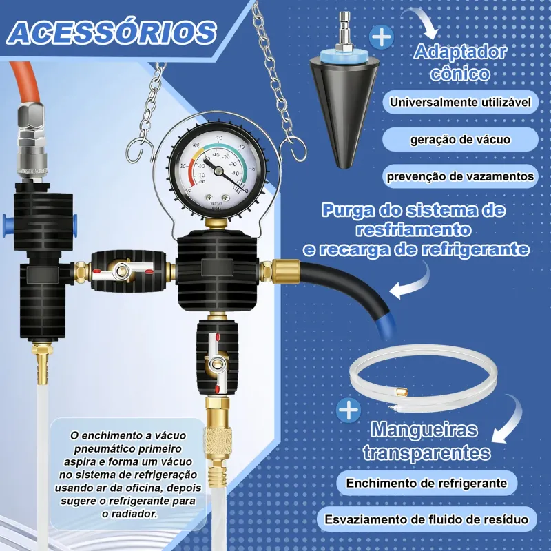 Kit 29 Peças Teste Pressão Radiador Sistema Arrefecimento